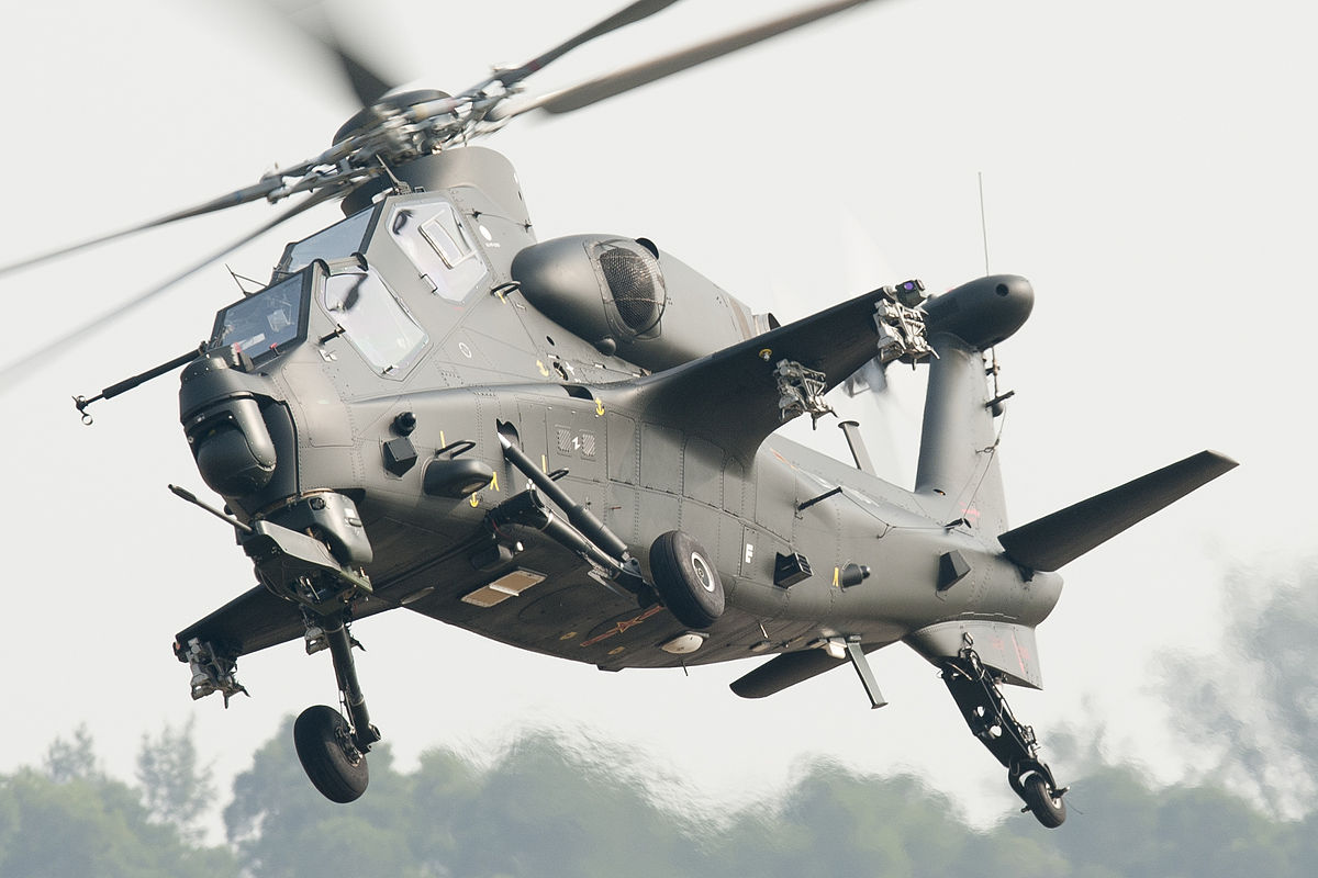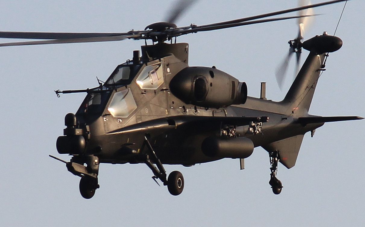 중국 인민해방군의 공격헬기로 2010년부터 배치된 최신기종입니다. WZ는 武裝直昇機(무장헬기) 의 Wuzhuangzhisheng의 약자입니다. 중국의 헬기 코드명은 直昇 Zhisheng의 약자를 따서 Z가 되지요. WZ-10은 중국이 처음으로 독자 개발한 공격헬기로서 AH-64와 마찬가지로 대전차 공격임무를 맡고 있습니다. 무장으로 23,30mm 유탄,14.5mm발칸,57,90mm 무유도 로켓,대전차 미사일,90식,PL-5,7,9 공대공 미사일을 탑재합니다.