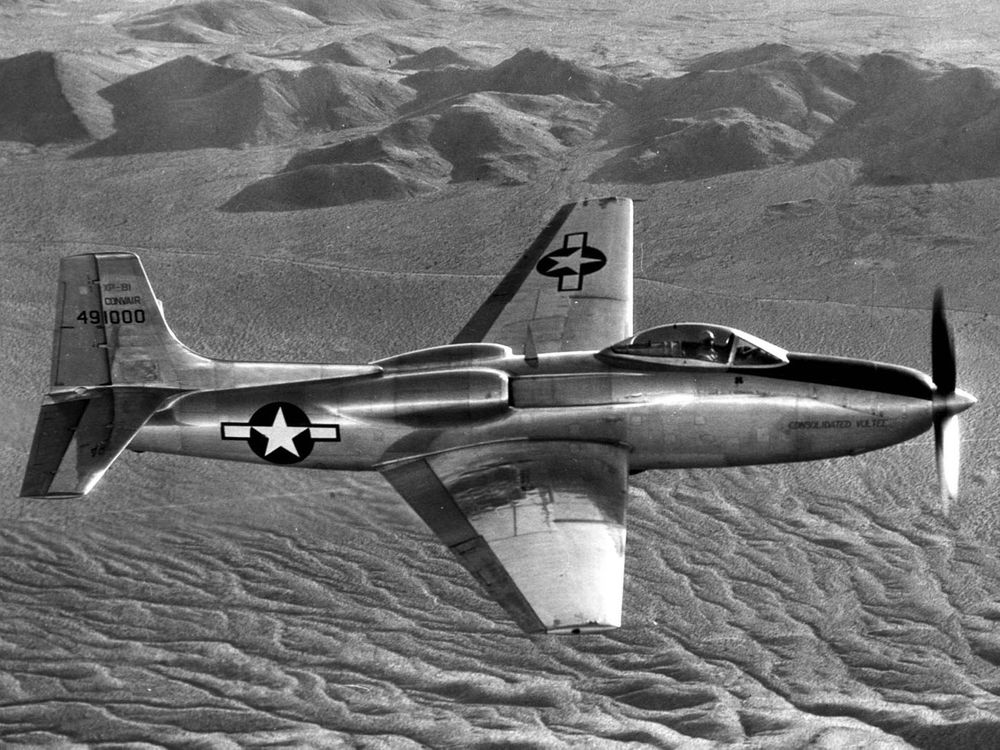 콘솔리데이트 XP-81은 미국의 장거리 호위기로 개발되었던 기종입니다. 터보 제트와 터보프롭을 모두 사용하였으나, 두 엔진을 적절하게 결합하는데 어려움이 있었고 2차 대전의 종전과 함께 취소됩니다.